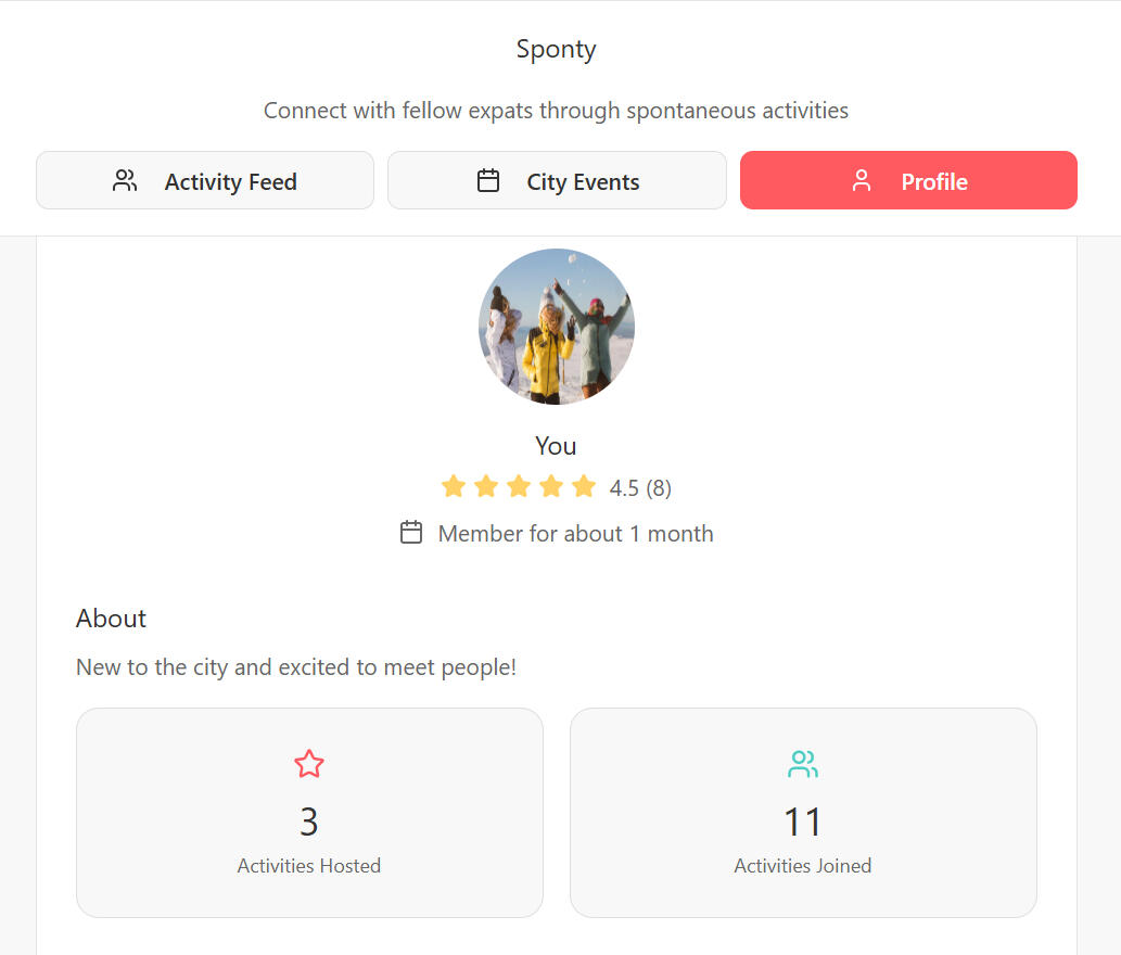 We connect expats and city people to stop doing cool stuff alone (coffee, walks, museum trips, sports).